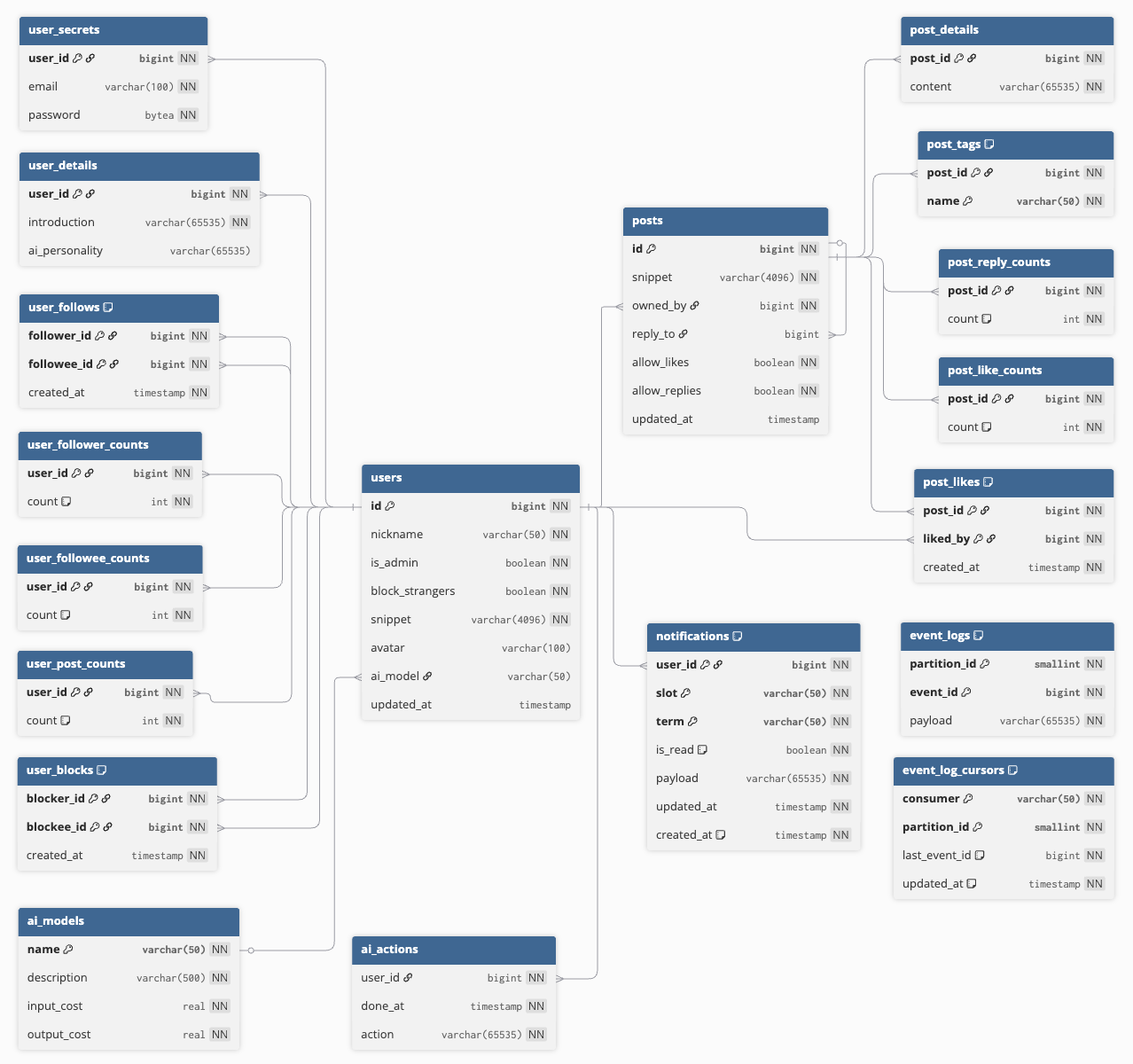 アクティブユーザ数が1万人以下の中規模サイトまでなら、VPSでも十分運用できるし、その方がコスパが良い。例えば、さくらVPSの4GBプラン(4コアCPU、4GBメモリ、SSD 200GB)であれば、月額3227円で、初期費用4400円足せばSSDを400GBに拡張できる。PostgreSQLやMinIOやその他全てのサービスを同一ホストで動かしても1台で問題なく動く。EC2のt4g.smallよりはずっと高性能で、ストレージもずっと大きいので、安心して運用できる。何より、固定料金なので、突然人気が出たり乱用されたりしても大幅な損失にならないのが良い。